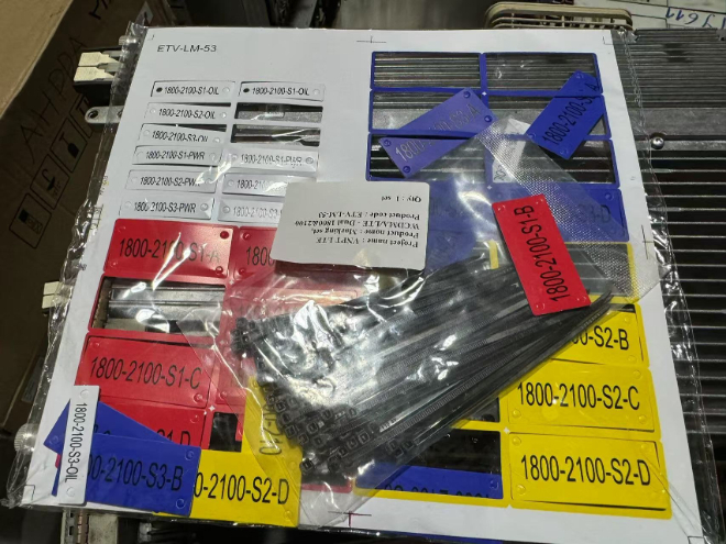 تحتوي مجموعة الملصقات الواحدة على وحدات ملصقات متعددة. تتم طباعة كل وحدة بأحد التفاصيل التالية: · الرقم التسلسلي للقطاع: ملصقات كافية لـ 6 قطاعات. · اسم التكنولوجيا: 2G أو 3G أو 4G. · نطاق التردد: 900 ميجاهرتز أو 1800 ميجاهرتز أو 2100 ميجاهرتز. · رمز الألياف لنفس القطاع والتكنولوجيا ونطاق التردد (بنفس MIMO): A أو B أو C أو D.